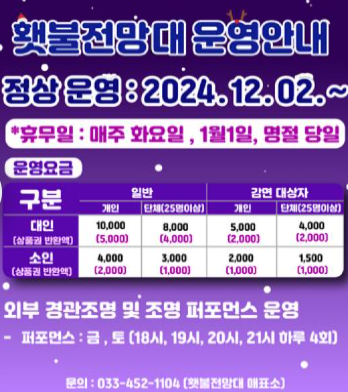 - 운영시간: 10월~ 3월, 09:00~17:00 (입장 마감 16시)