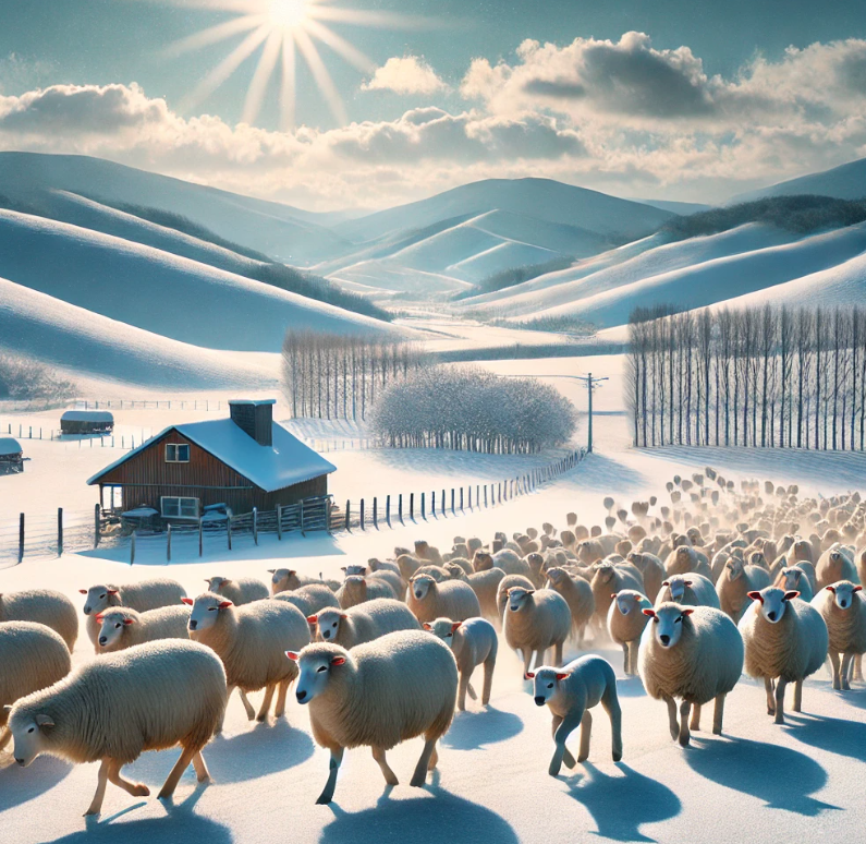 눈 덮인 초원을 거니는 양들의 모습은 겨울에만 느낄 수 있는 특별한 풍경을 제공합니다. 가족과 함께 자연 속에서 힐링을 즐길 수 있는 최고의 여행지입니다.