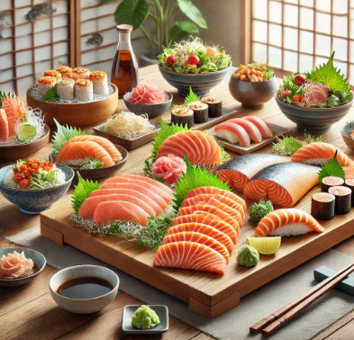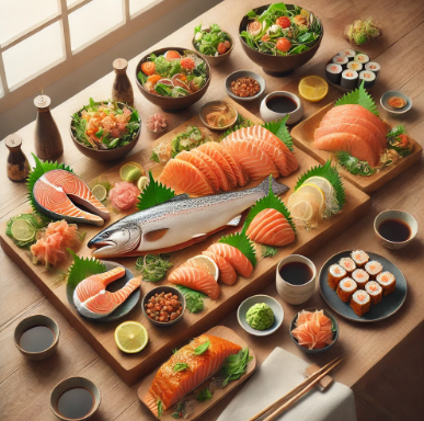 - 연어회는 얇게 썰어 채소 위에 올려주거나, 구운 연어를 준비해도 좋습니다.