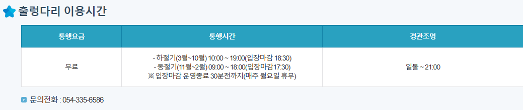 - 동절기(11월~2월): 오전 9시부터 오후 6시까지
