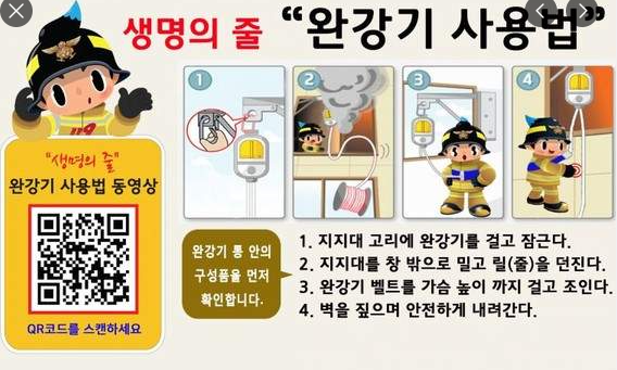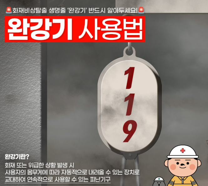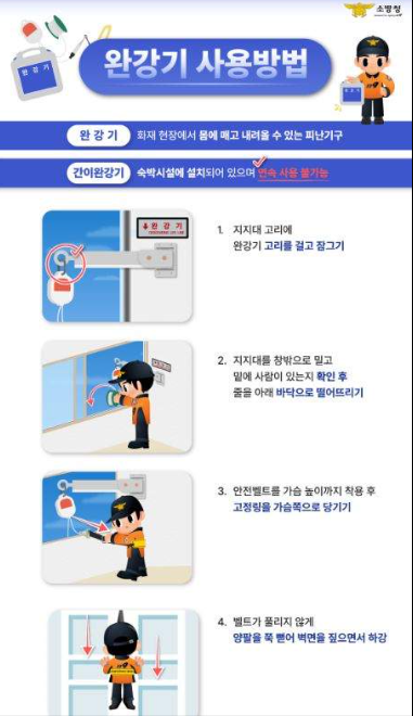 1~2층은 비교적 탈출이 쉽고, 11층 이상은 바람과 무게로 인해 추락 위험이 커져 완강기 설치 대상에서 제외되었습니다. 하지만 중간층에 사는 입주민들은 완강기를 반드시 숙지해야 합니다.