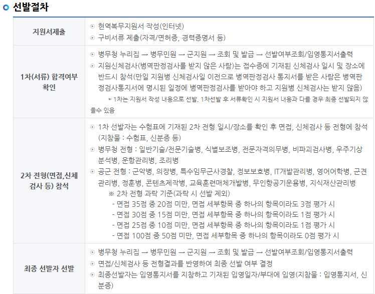 - 입영 시기: 지원 후 약 3개월 뒤 입영이 진행됩니다.