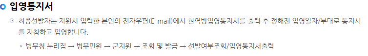 면접 및 신체검사 결과를 종합하여 최종 합격자를 선발합니다. 합격자는 입영 통지서를 받아 지정된 날짜에 입영하게 됩니다.